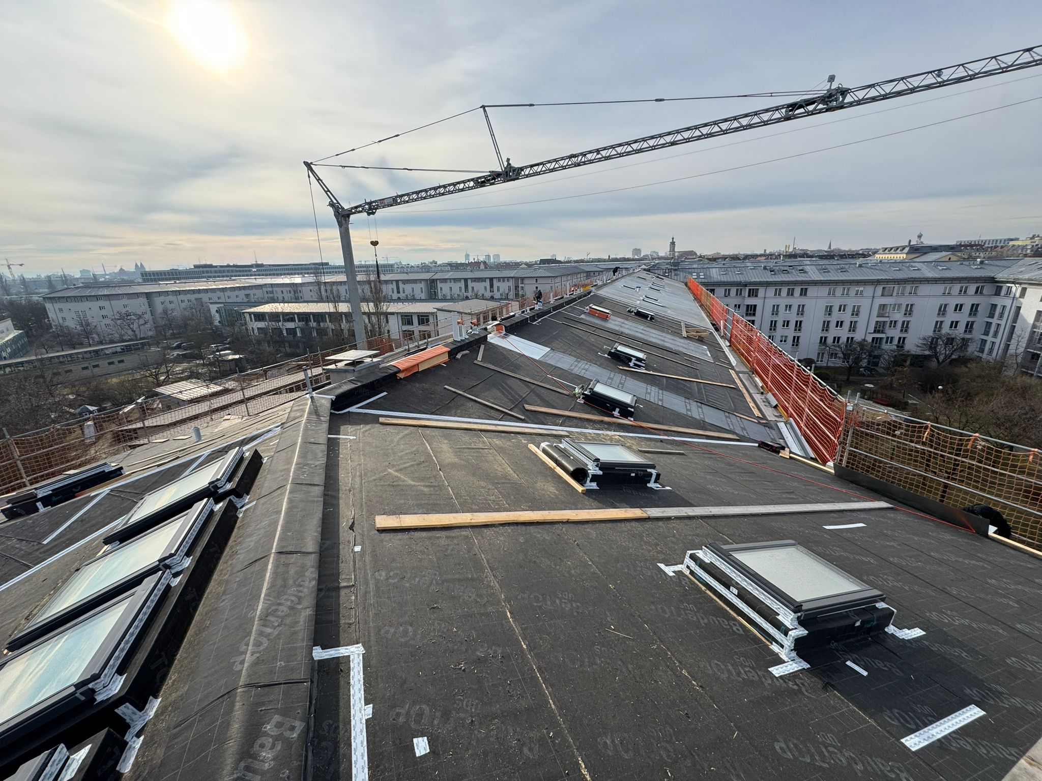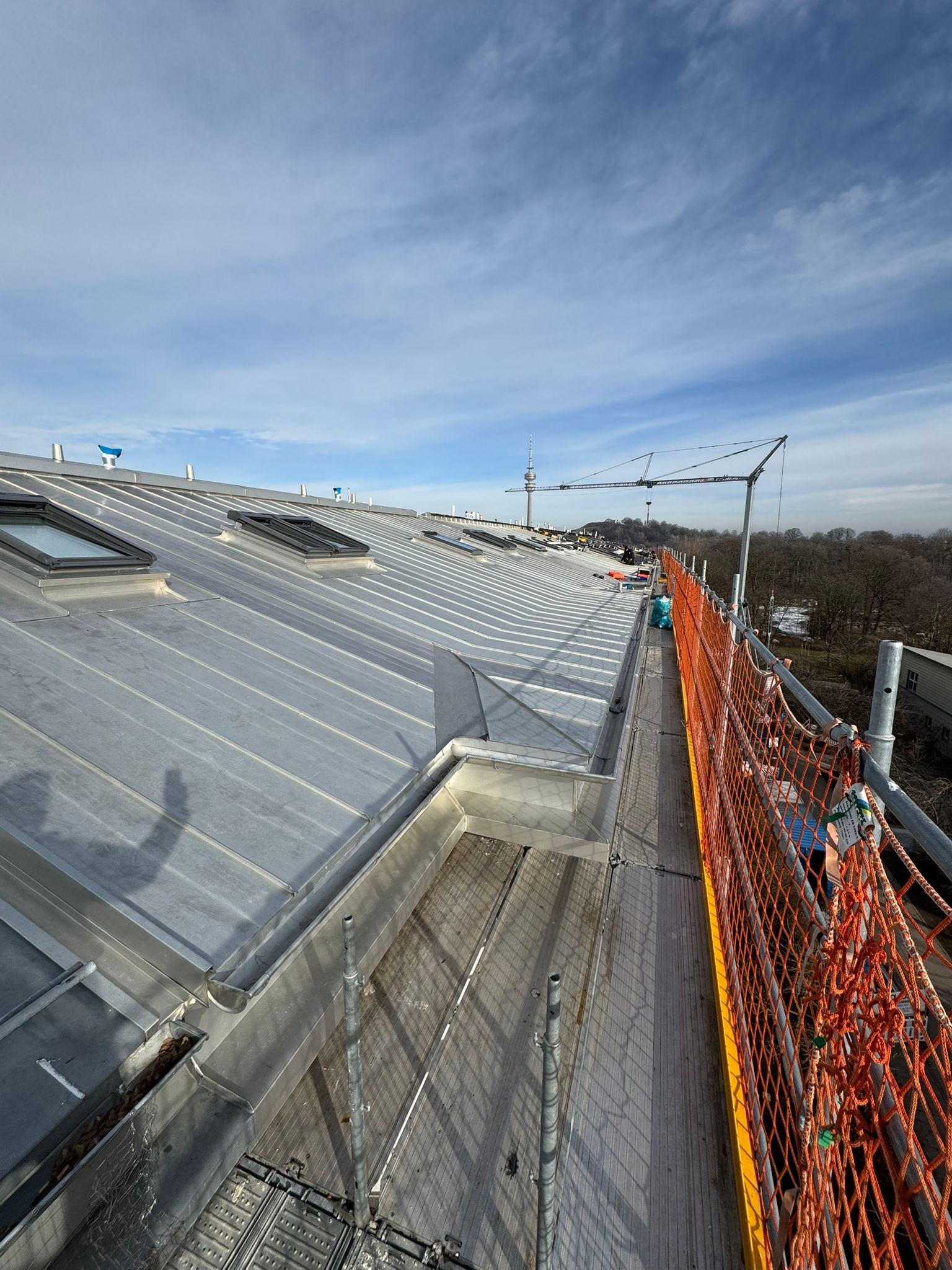 J.Clauss Bedachungen seit 1880 + J.A.Burghart Bedachungen seit 1873 – Unser gemeinsames Projekt: Energetische Blechdachsanierung – ca. 2400qm Aufsparrendämmung – 70 Dachfenster – Eindeckung mit verzinnten Edelstahlbändern. Danke für die reibungslose, professionelle und partnerschaftliche Zusammenarbeit!